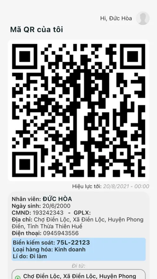QR Code Xe thông hành - Ứng dũng hồ trợ theo dõi thông tin lịch trình vận tải