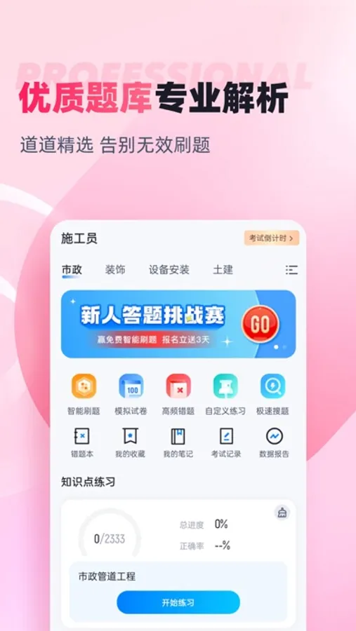 助产士题库内含考点练习,全国通用卷以及地区卷模拟练习,以及按照固定考试比重的随机式的抽题的真题考场,成绩单实时记录考试数据,一点一滴的反馈考生近期学习状态以及自我正确率的提升,大大的给予考生通过考试的信心。