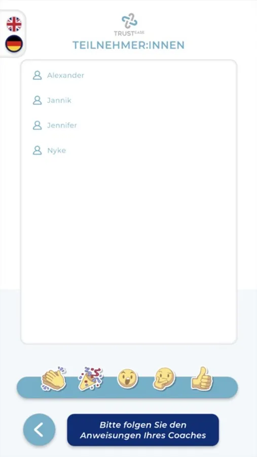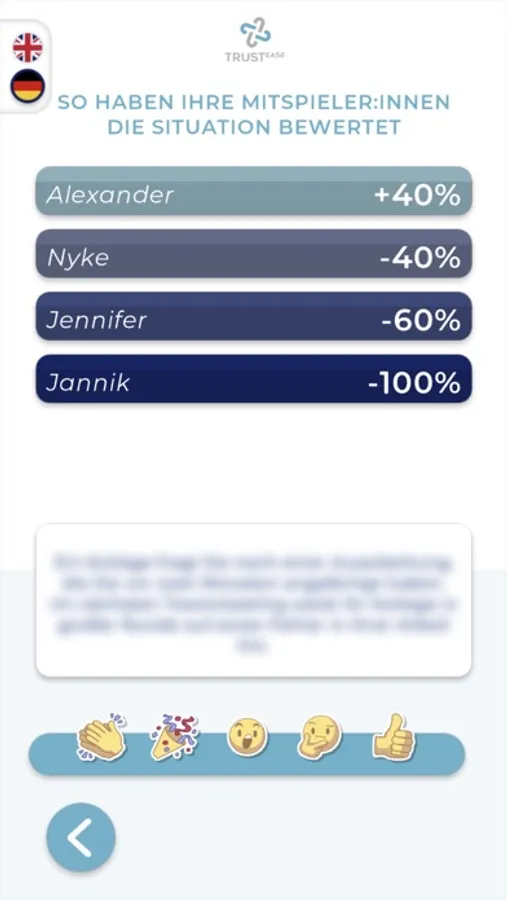 Diese App ist nur für Spielende einer TRUSTease-Session, die Ihre Wertung über ein mobiles Endgerät abgeben wollen.