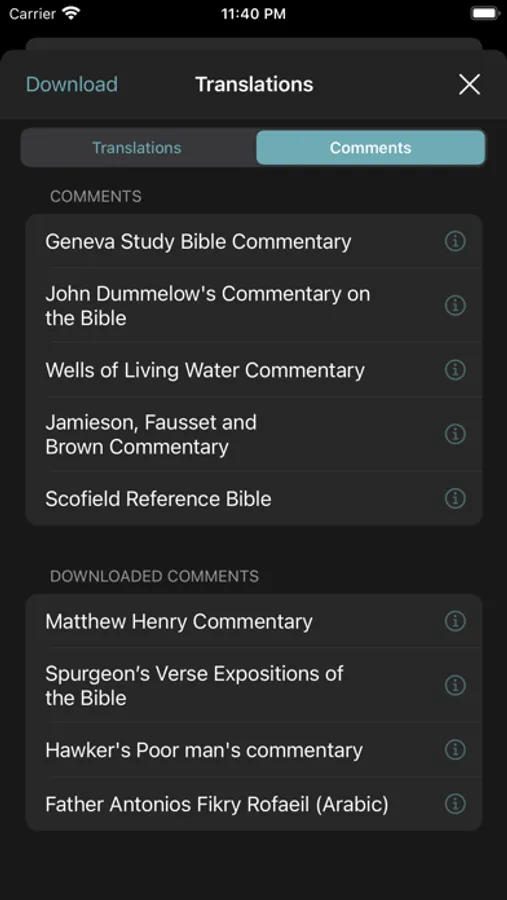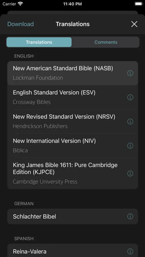 . Subheadings for each translation (Subheadings can be turned off in the settings)