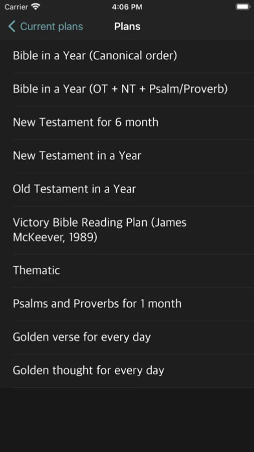 . 10 reading plans are provided, with the option of daily notification of today's plan