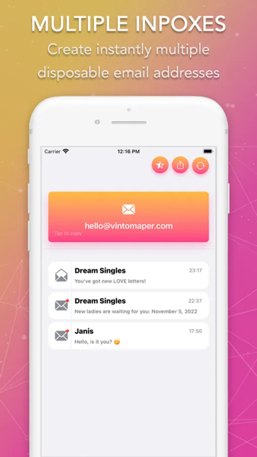 Here you can get a randomly generated email address and even rename it for free. Just copy it to the clipboard and paste whenever you need it for registration. Then automatically will refresh when receive a reply. Please pay attention that you can receive emails with the generated email, not send them. Received messages will be kept only for 48 hours.