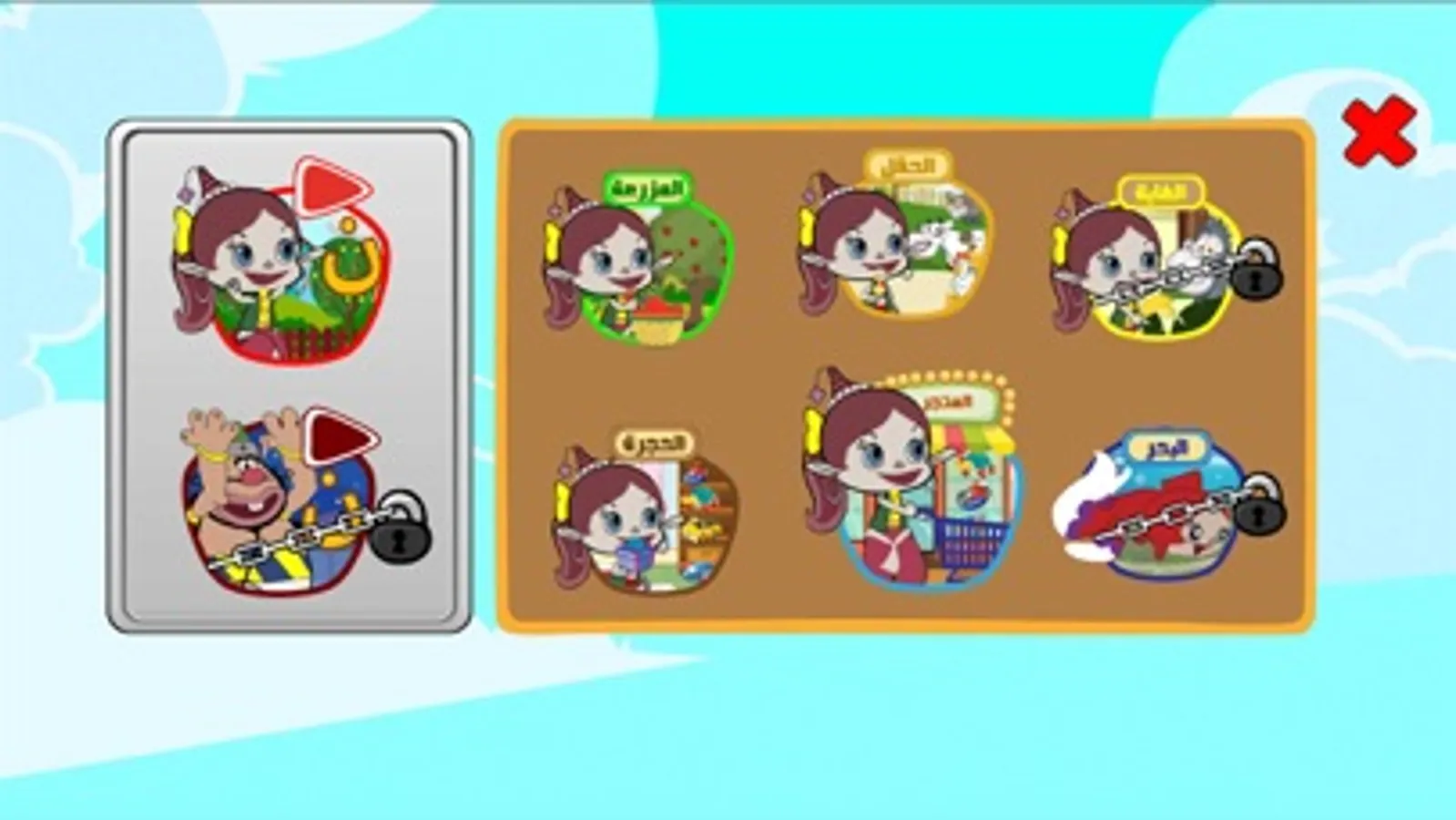 العب لعبة الجري و القفز و التقط الحروف و تفادي العوائق و اشتري من المتجر الاشياء المختلفة بالحروف العربية التي تم تجميعها ثم مشاهدتها في الحجرة او المزرعة او الحقل أو البحر أو الغابة و الضغط عليها لمعرفة نطقها و نطق الحرف الذي تبدأ بها الكلمة و شكل هذا الحرف.
