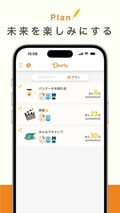 Dearliyのプラン機能を使って、楽しみな予定を立て、大切な人と約束してみましょう。