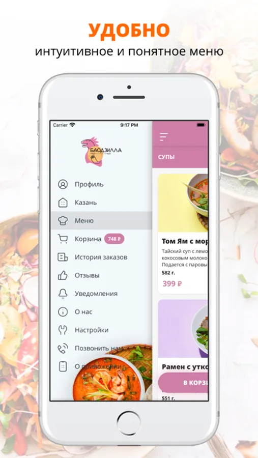 В нашем меню Вы найдете фирменные бао-бургеры, рамен, том-ям, вторые блюда и десерты, которые теперь так просто заказать с доставкой по Казани!