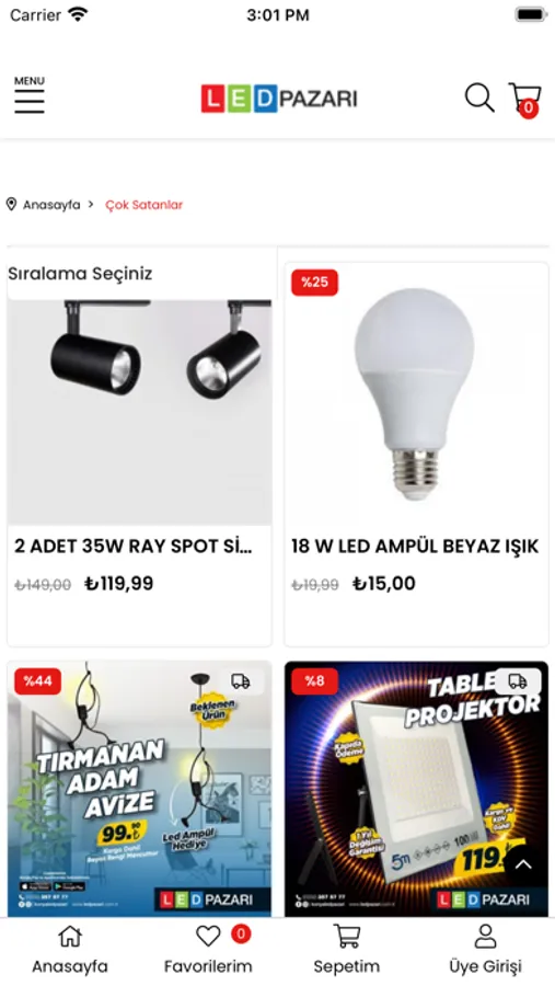 Ledpazari.com mobil e-ticaret uygulaması ile anında;