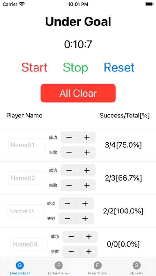 同時に、ストップウォッチでシュートが入る本数のタイムを計ることができます。