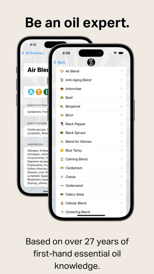 * Oil Dictionary - a guide to over 94 essential oils & blends with notes on the body systems and conditions they relate to.