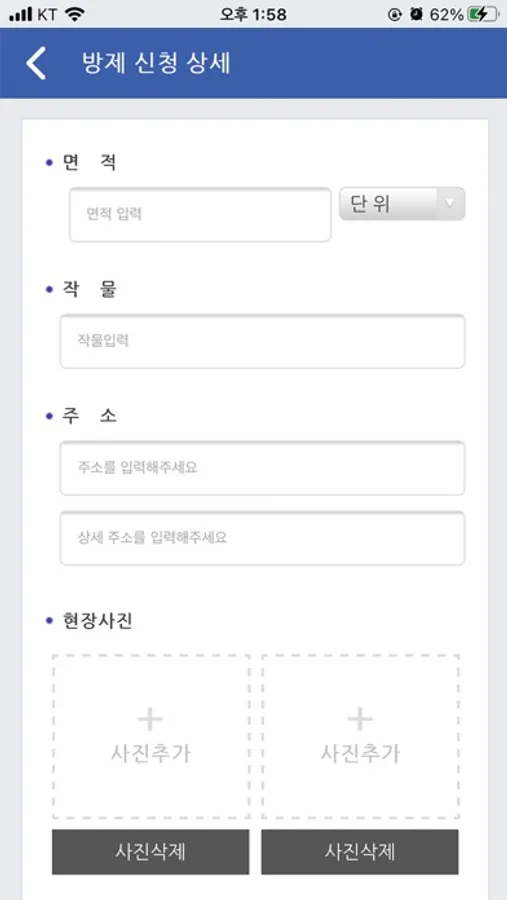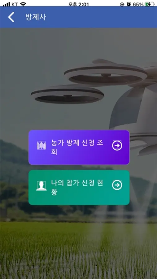 - 농가는 어플에 회원가입/로그인 하여 방제 신청을 할 수 있으며 자신이 신청한 방제 내역에 참여한 방제사를 확인할 수 있고 방제사에게 연락을 할 수 있습니다.