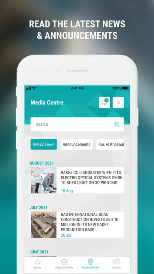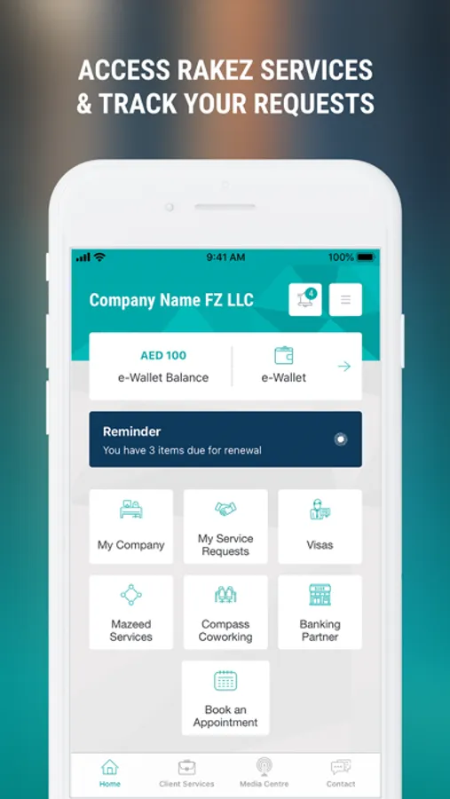 Our mobile app allows you to track the status of your requests, raise enquires, get support, make payments as well as catch up on the latest news. It also provides direct access to RAKEZ Portal 360, a platform wherein our clients can initiate their renewal requests