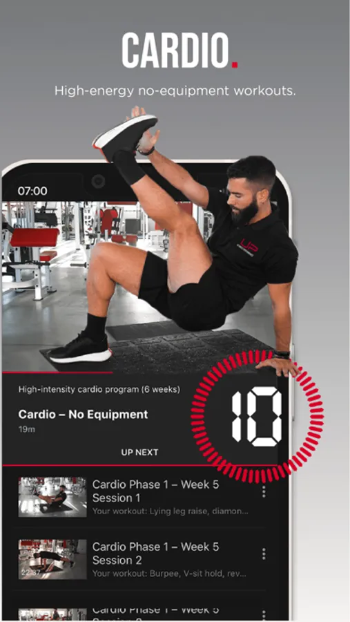 BODYWEIGHT CARDIO SESSIONS – Fire up your motivation working out with your trainer on screen.