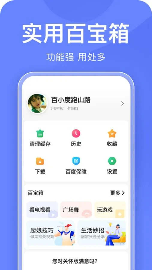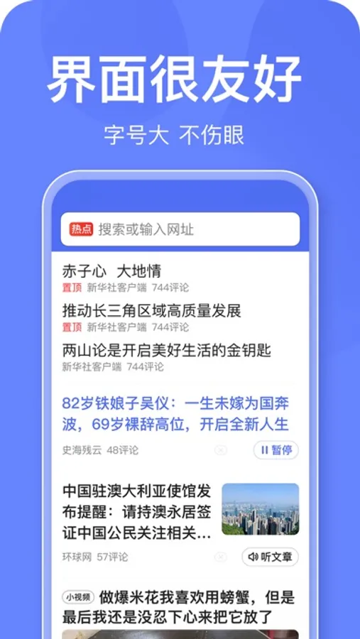 聚合适老化内容和服务,精选视频,新闻热点,便捷搜索,多功能百宝箱,应有尽有
