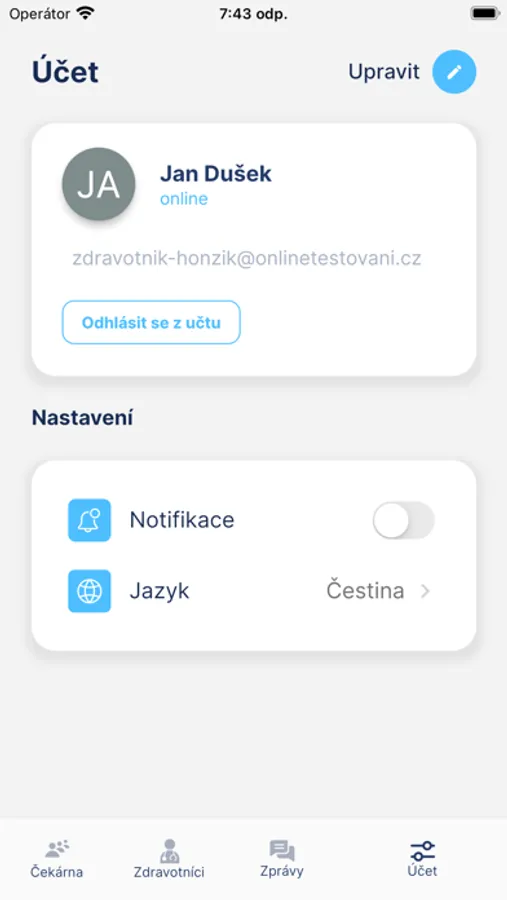 Aplikace ukazující stav čekárny pro platformu onlinetestovani.cz.
