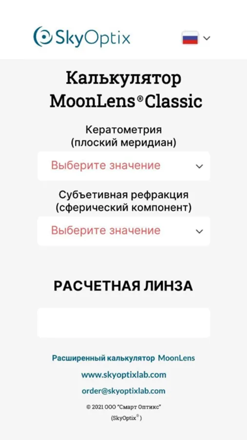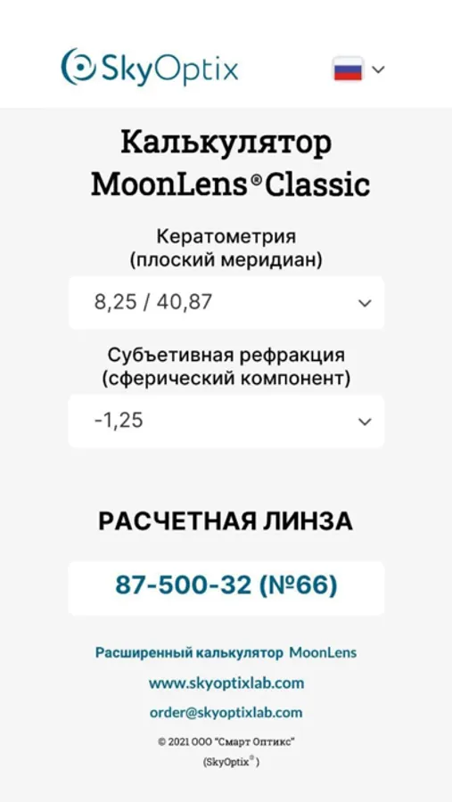 Калькулятор SkyOptix позволяет за 30 секунд рассчитать линзу по индивидуальным параметрам, что удобно для специалистов и экономит время на врачебном приеме.