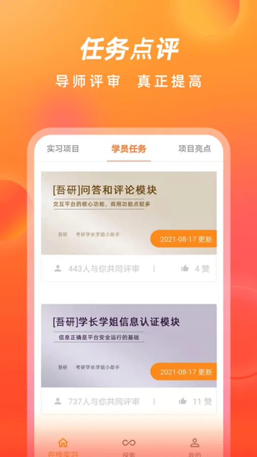 亲自动手作,然后导师进行评审,与看书或者看书的效果不一样。更好的掌握技能和思维。