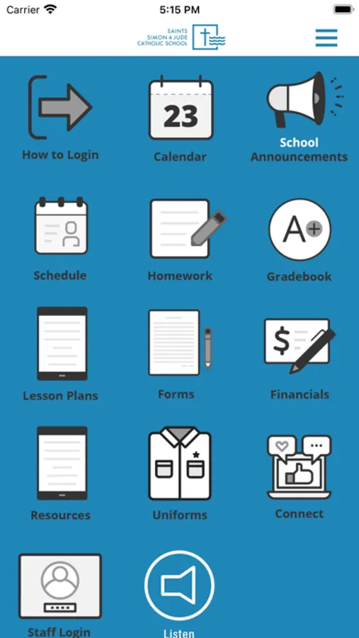 Welcome to the Family App for families of Saints Simon & Jude Catholic School in Huntington Beach! This app is a one-stop-shop for our school community, with anytime, anywhere access to all the tools, content, and communications parents need to stay connected and engaged. School information available in one easy to access place includes Announcements, School Calendar, Student Grades and Homework, Family Accounting, and much more!