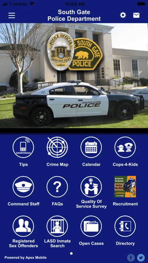 Welcome to the iOS app for the South Gate Police Department. The South Gate PD app allows users to report issues or concerns directly from your iOS device with photos! There are useful links for community resources, crime prevention, and on-line reporting!