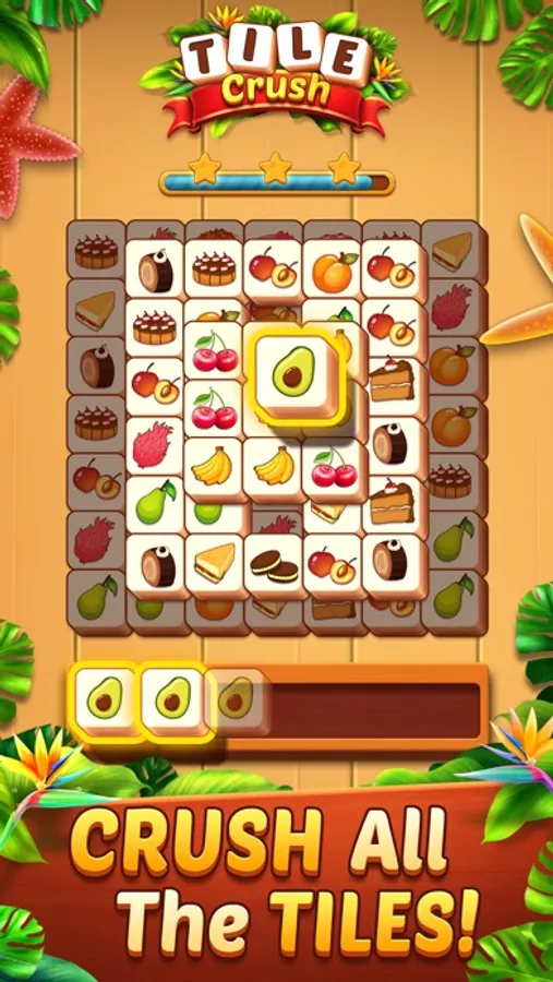 Shiny triple of animals, food, school items, household objects, emojis, and many more exciting type levels to unlock by simply matching the triple tiles!