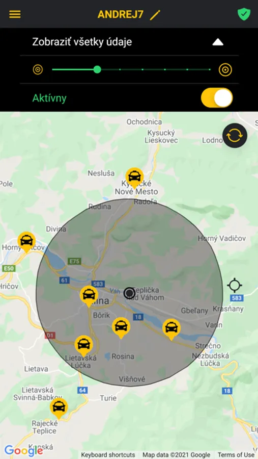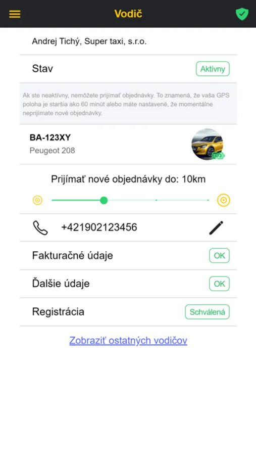 -možnosť zvoliť okruh doručovaných objednávok (5km, 10km, 15km, 20km)