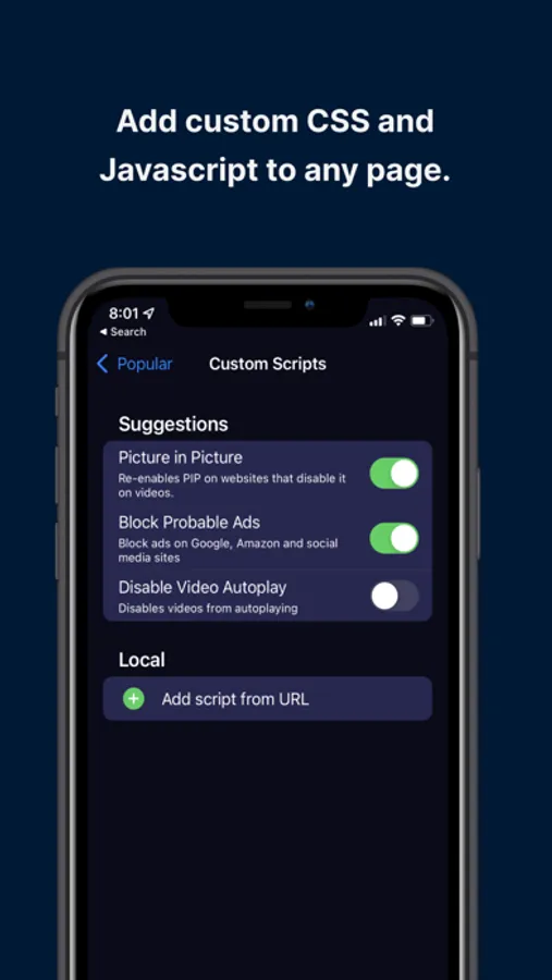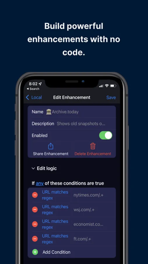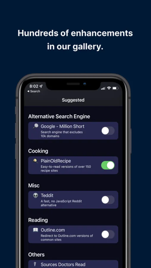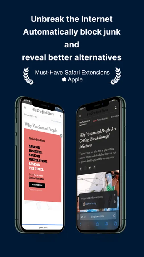 Hyperweb is an all-in-one extension for Safari on iOS. It suggests enhancements automatically as you browse, blocking annoyances and suggesting smart alternatives.
