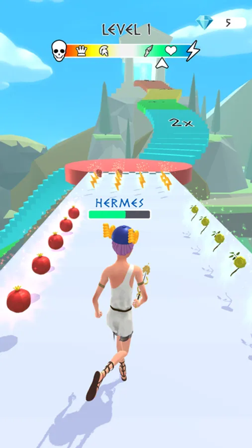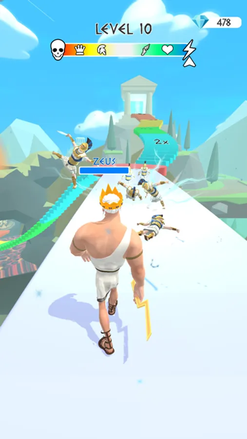 Transform between the olympian gods and race through the paths of ancient Greece to reach to the mount Olympus and punish the mortals who dare to stand in your way!