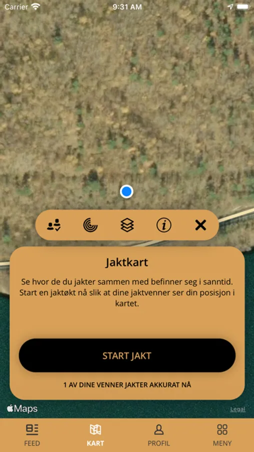 - Få oversikt over hvor vennene dine befinner seg i sanntid i vårt egentuviklede jaktkart.