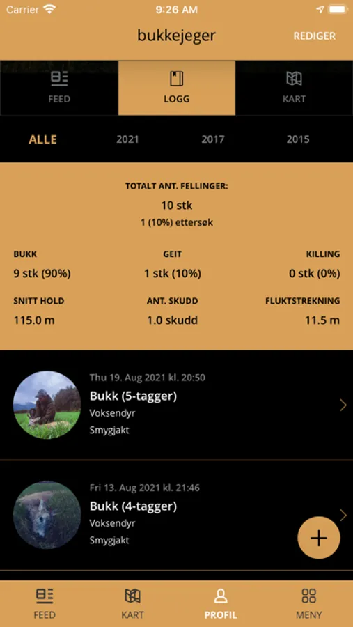 - Del fellingene dine med andre ivrige jegere og se hva andre har felt med tilhørende fellingsdata!
