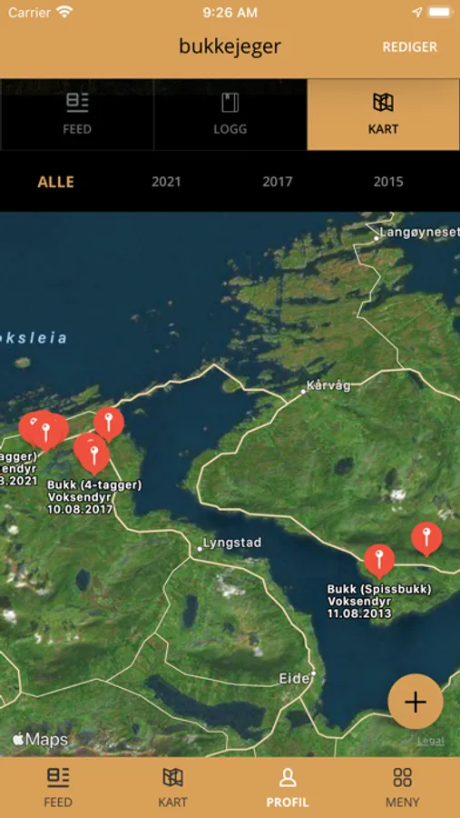 - Logg fangstene dine og få en interaktiv fangstlogg hvor du kan se all nøkkelinfo om fellingene.