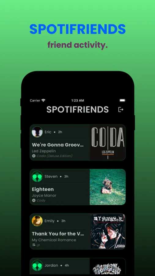 The first app to bring you mobile Spotify friend activity since August 25th, 2021.