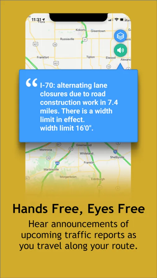 • Hands-free, eyes-free audio notifications of traffic events while you drive
