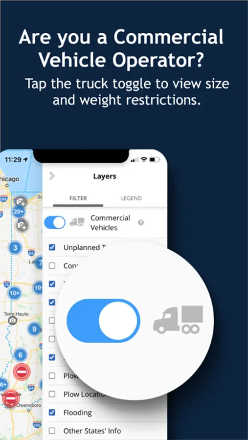 • Near real-time updates on traffic incidents, construction, truck restrictions, flooding, and road closures