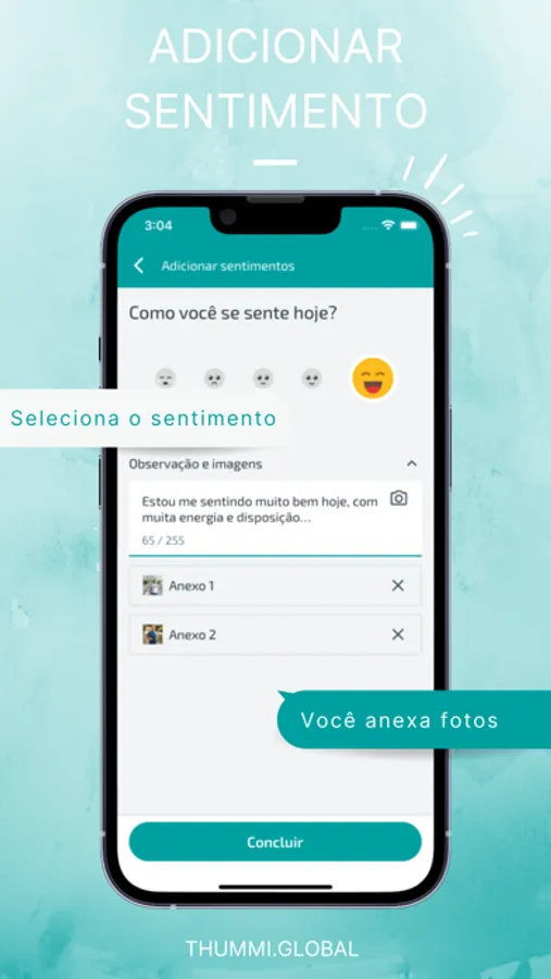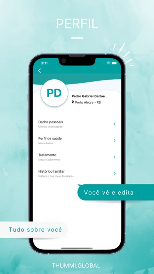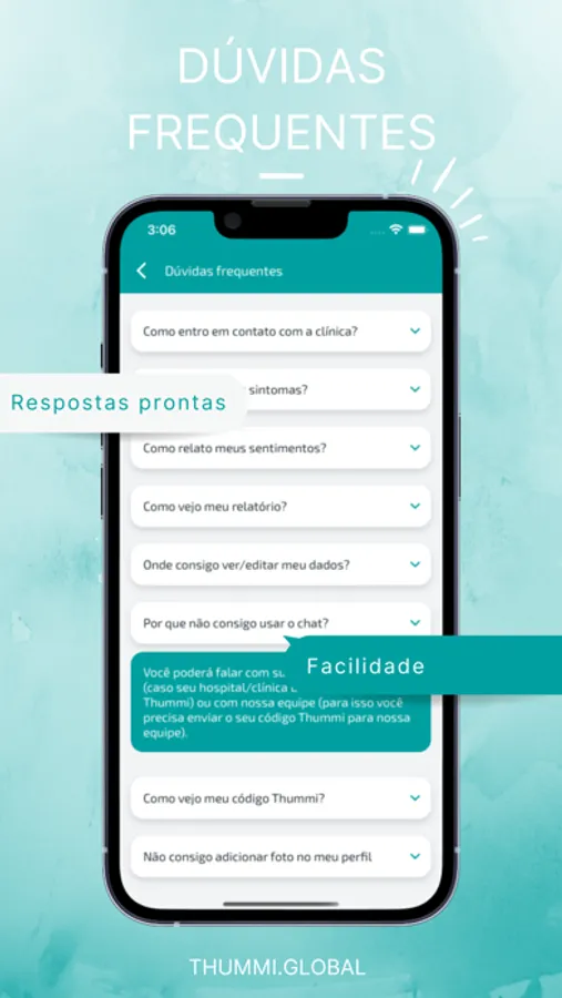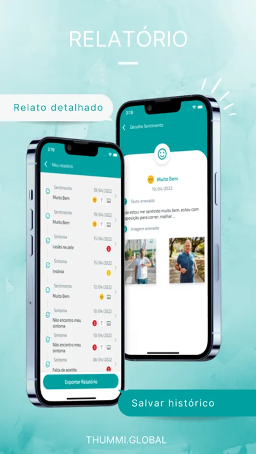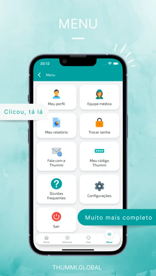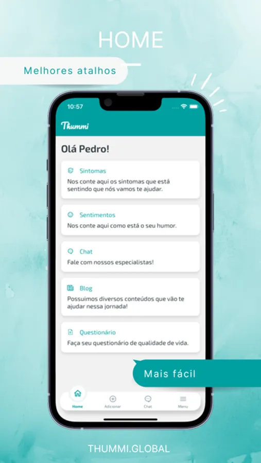 O Thummi acolhe, auxilia e empodera! É um amigo que recebe todas as informações a serem monitoradas e também compartilhadas com o médico.