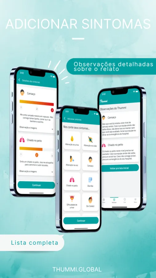 O Thummi está sempre em expansão! Um aplicativo horizontal que cresce de acordo com as necessidades dos pacientes. Tem algum recurso que você gostaria de ver em uma versão futura do aplicativo? Não deixe de compartilhar via aplicativo ou através do e-mail: contato@thummi.global
