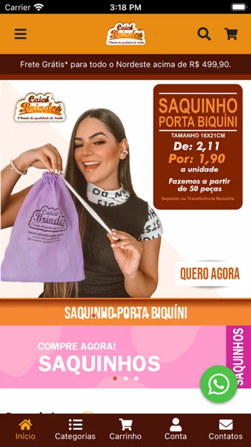Com o App da Caicó Brindes, agora será possível realizar suas compras, consultar o nosso catálogo de produtos e ter acesso exclusivo a descontos, cupons, promoções e ofertas exclusivas.