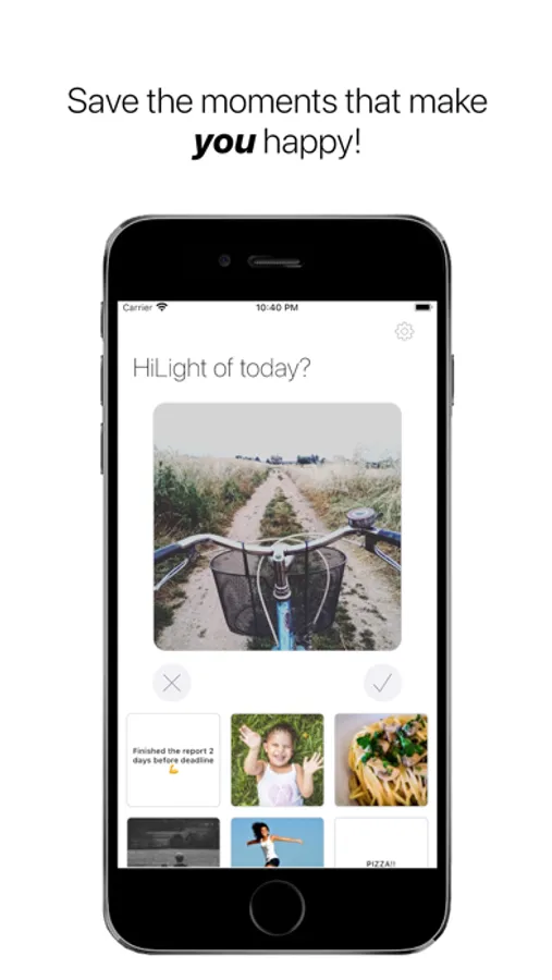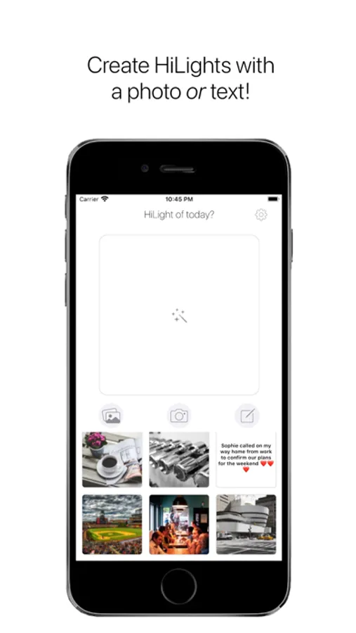 HiLights lets you save one moment per day. It can either be a photograph or in the form of text. You can only save one moment per day. Once you have done this you are not able to erase or edit the saved moment.