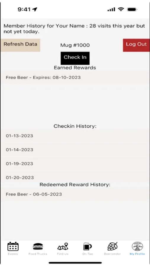 If you are a Mug Club Member, you can also view your rewards and visit statistics!