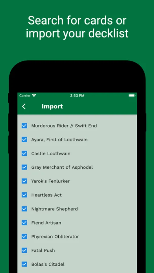 You can also import your decklist directly from Arena using the export format in the deck builder. Simply copy and paste this list into the app to create alerts for every card in the deck.