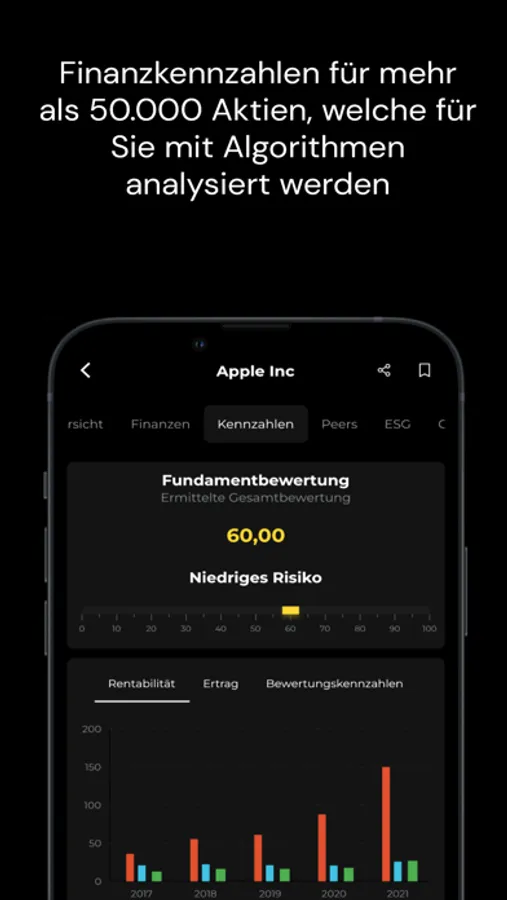 Die Fundamentaldaten von Aktien werden mit Algorithmen analysiert und für Dich einfach präsentiert.
