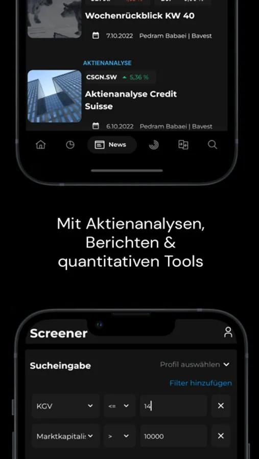 Entdecke Wertpapiere, die Deinen persönlichen Anlagekriterien entsprechen. und analysiere diese automatisiert.