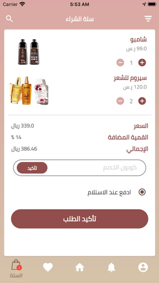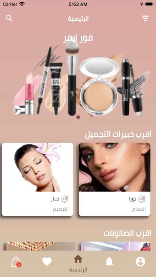 اشعارات التطبيق : ارسال اشعارات للمستخدمين لمتابعه اعلانات وخصومات الصالونات وخبيرات التجميل والهدايا المرسوله.