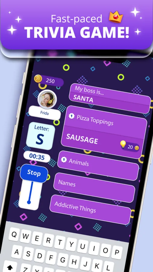 STOP 2 has updated the beloved quiz word game STOP for the modern concept of online games with friends. A new, customized experience where you can collect timers and select skins. There are themed, unique events, advanced multiplayer games and match-making, and new word game modes to play this challenging quiz.