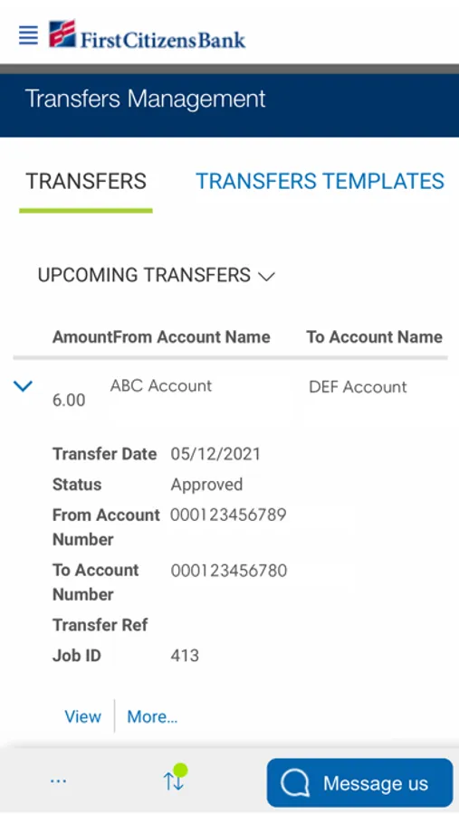 • Schedule one-time and recurring transfers and payments between your First Citizens business accounts—checking, savings, credit cards, lines of credit and loans