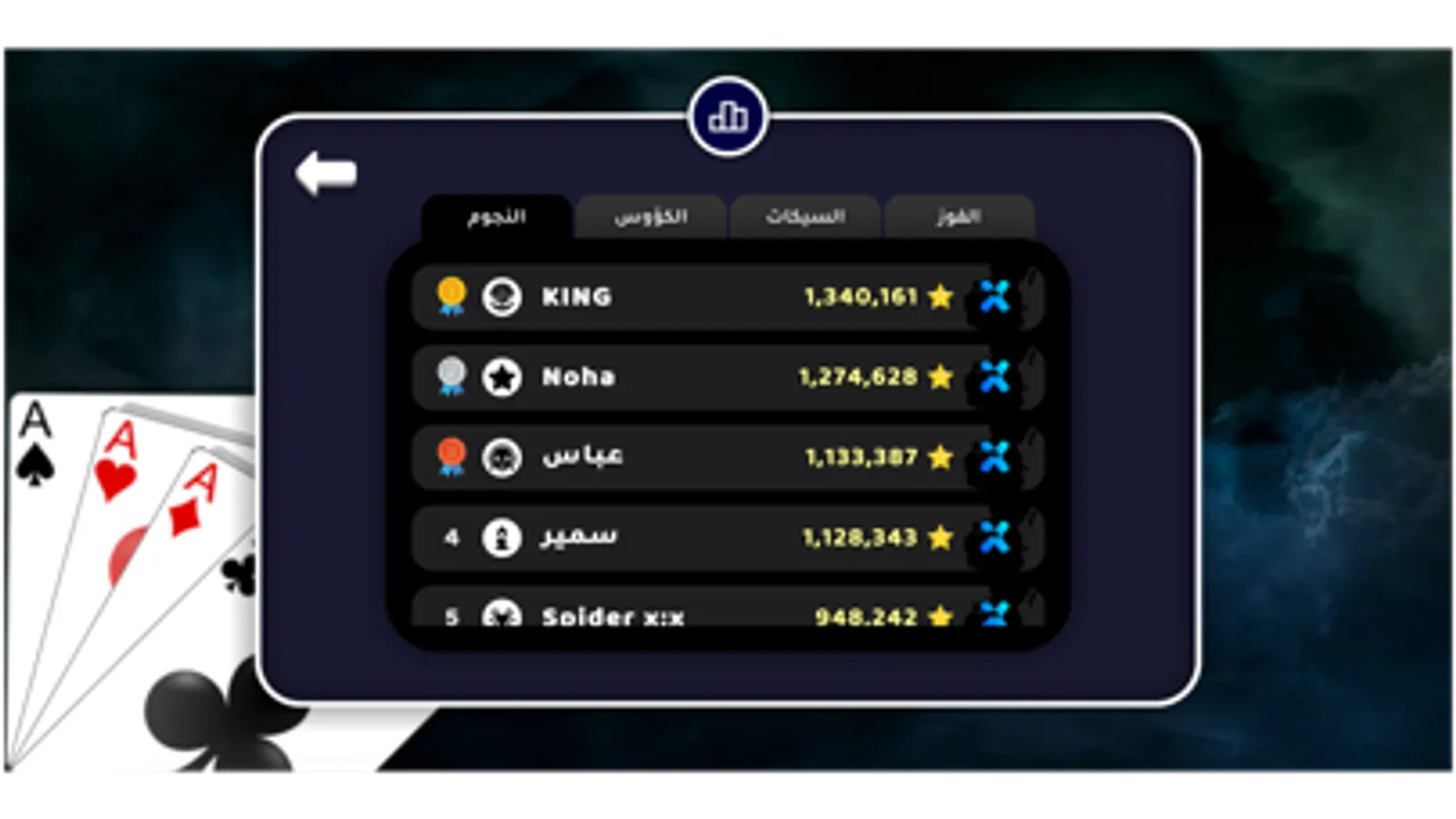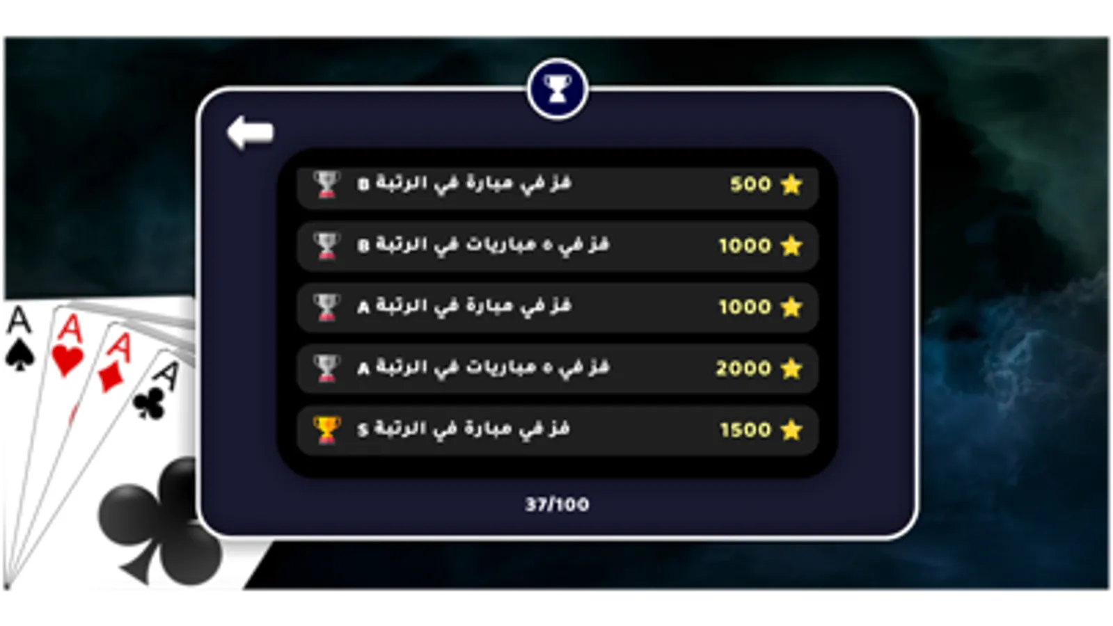 - Market: different whist cards game items can be bought using stars (received from collecting achievements), such items include: whist cards game themes (main menu backgrounds), cards(playing cards styles), whist cards game tables (in-game backgrounds), music(in -game background music).