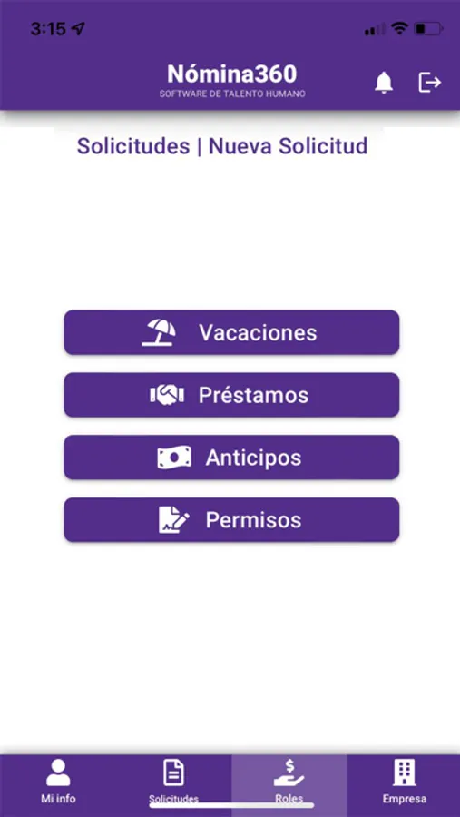 Solicitar: Préstamos, Anticipos, Vacaciones y Permisos
