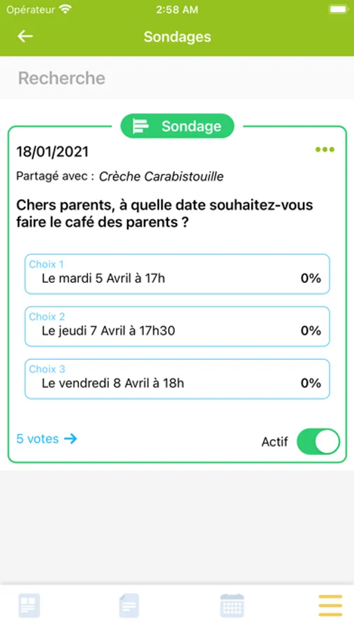 Les parents peuvent y retrouver différents contenus postés par les équipes encadrantes : informations utiles, menus, calendrier, rendez-vous, photos, vidéos… tout ce qui permet de mieux appréhender le projet pédagogique et de rester informé des journées de leur enfant.