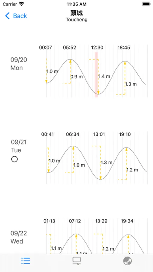 * 提供潮差、漲退潮剩餘時間,以便使用者評估目前潮流流速
