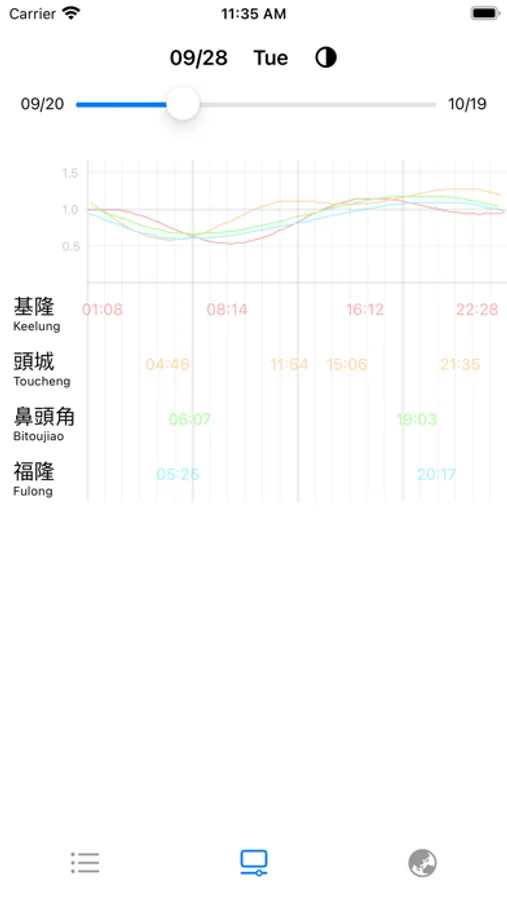 * 提供月相標示,可得知大潮、小潮