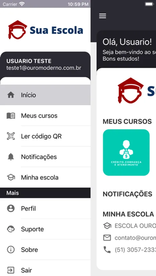 Meu App de Cursos é um aplicativo inovador e de fácil utilização. Nele é possível visualizar os mais variados cursos, apostilas, materiais e testes.