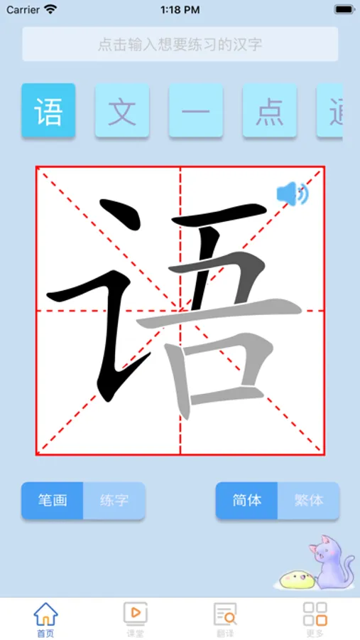 「汉字笔画」宝宝可以随意输入想要查询的汉字,会根据汉字给予笔画演示。同时支持临摹和自动笔画演示功能。当然宝宝也可以切换到繁体字查看繁体字,并且查看繁体字的笔顺。当然宝宝可以点击喇叭听汉字的发音。