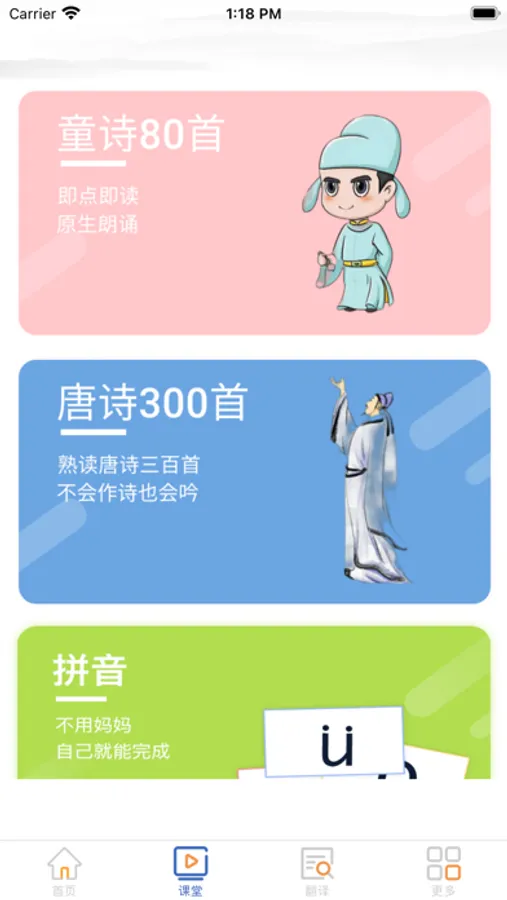 「唐诗300首」平台收集了唐诗宋词300多首,每首也包括了真人朗读功能,同时在古诗下边有诗文的相关解读。同时带有书签功能,方便下次使用定位到相关古诗。